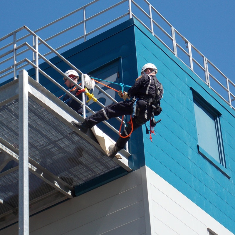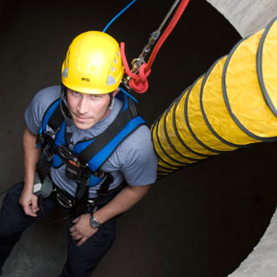 This three-story tower simulates an underground manhole rescue. Trainees enter from above and each level provides a safety for evacuation.